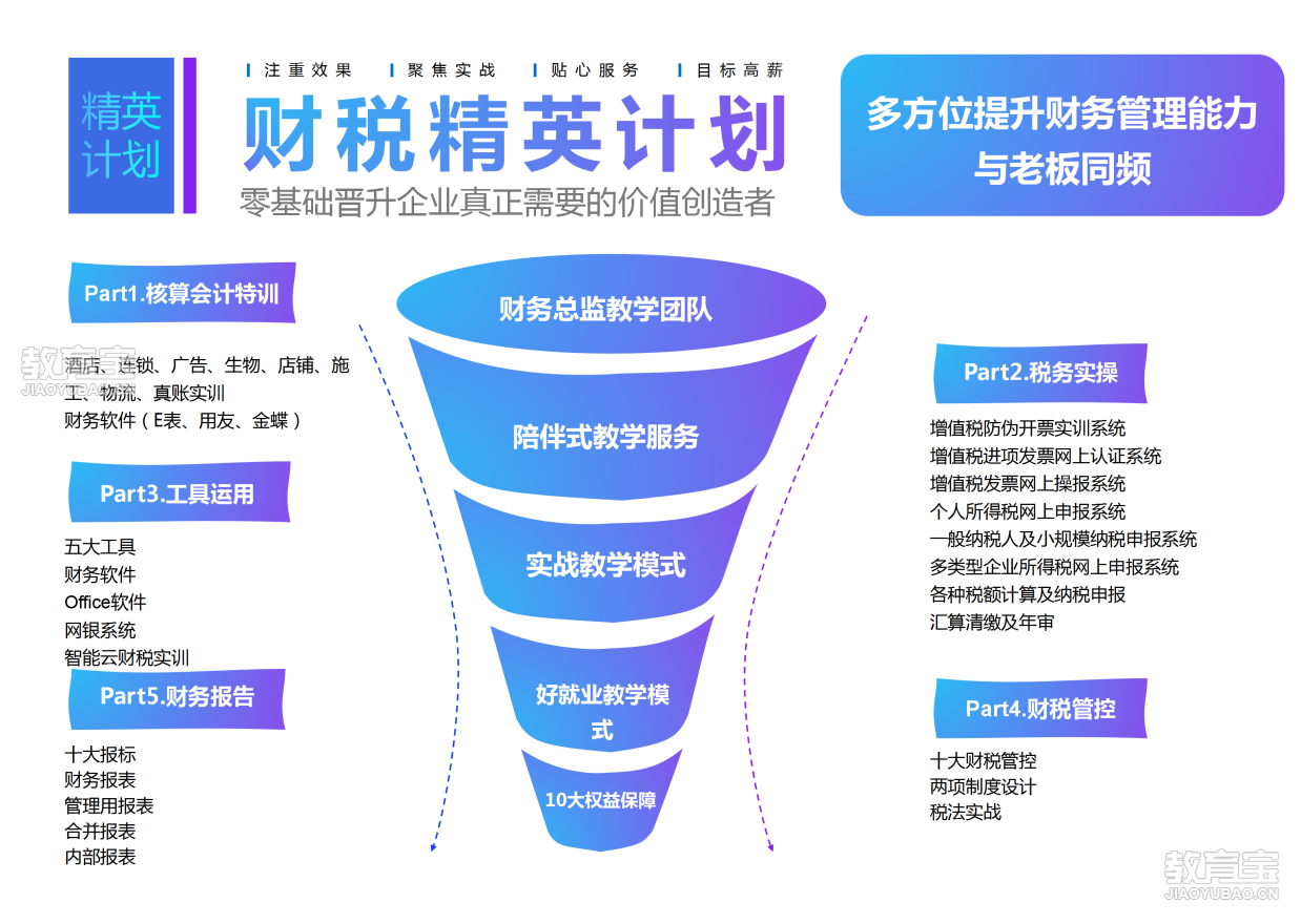 以财务经理工作核心作为核心内容,让你真正掌握财务管理、流程、税务筹划,预算管控等真实经验。